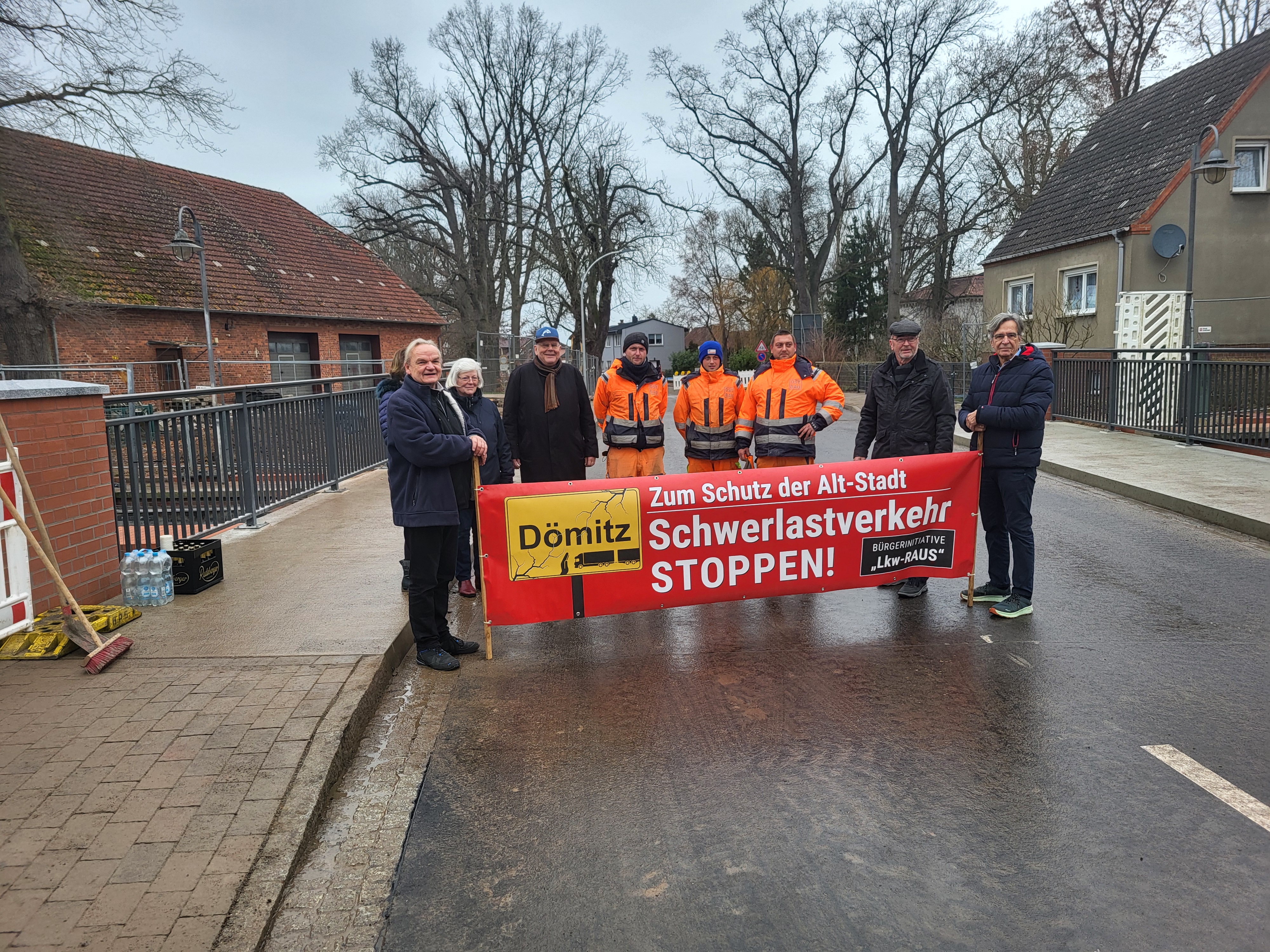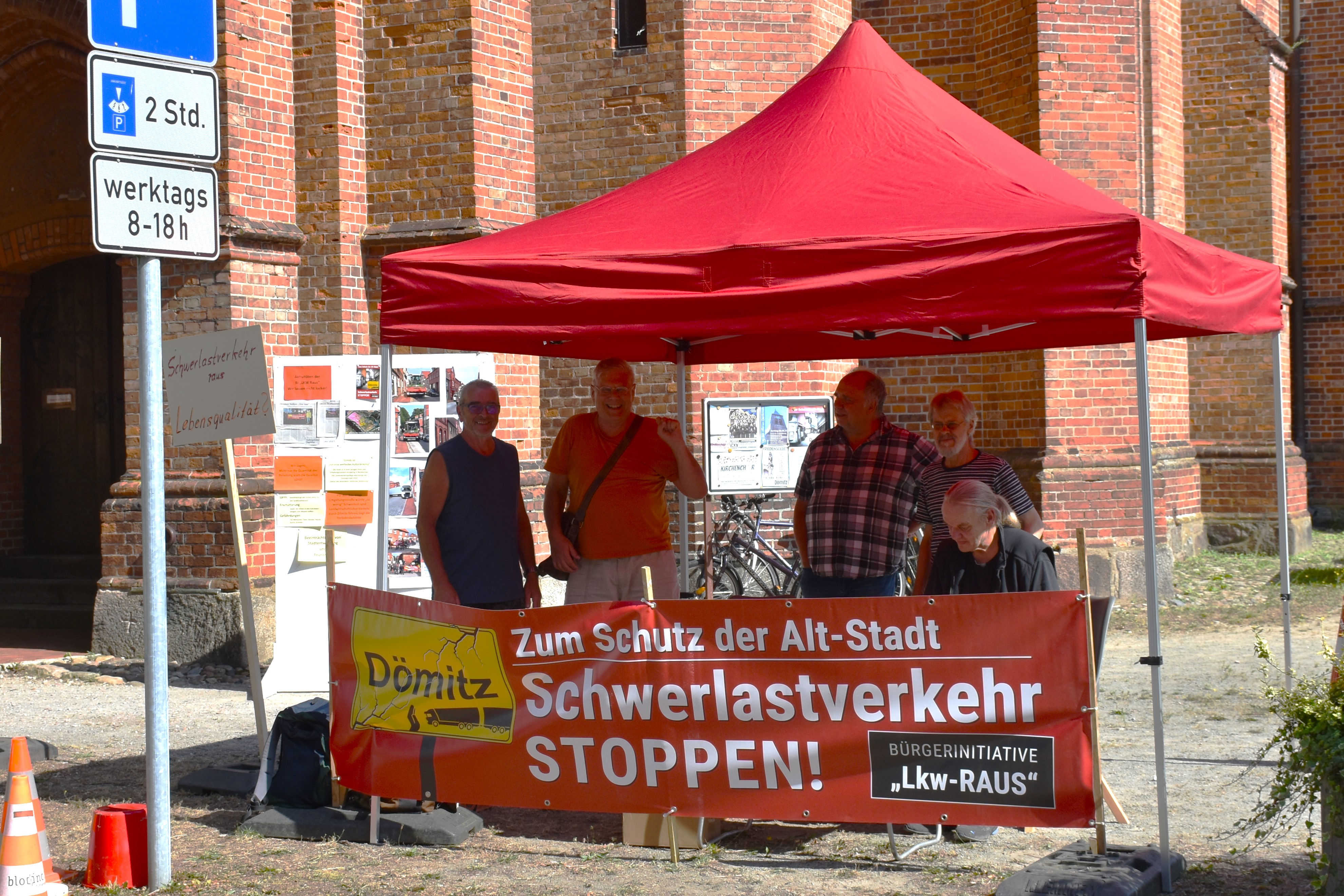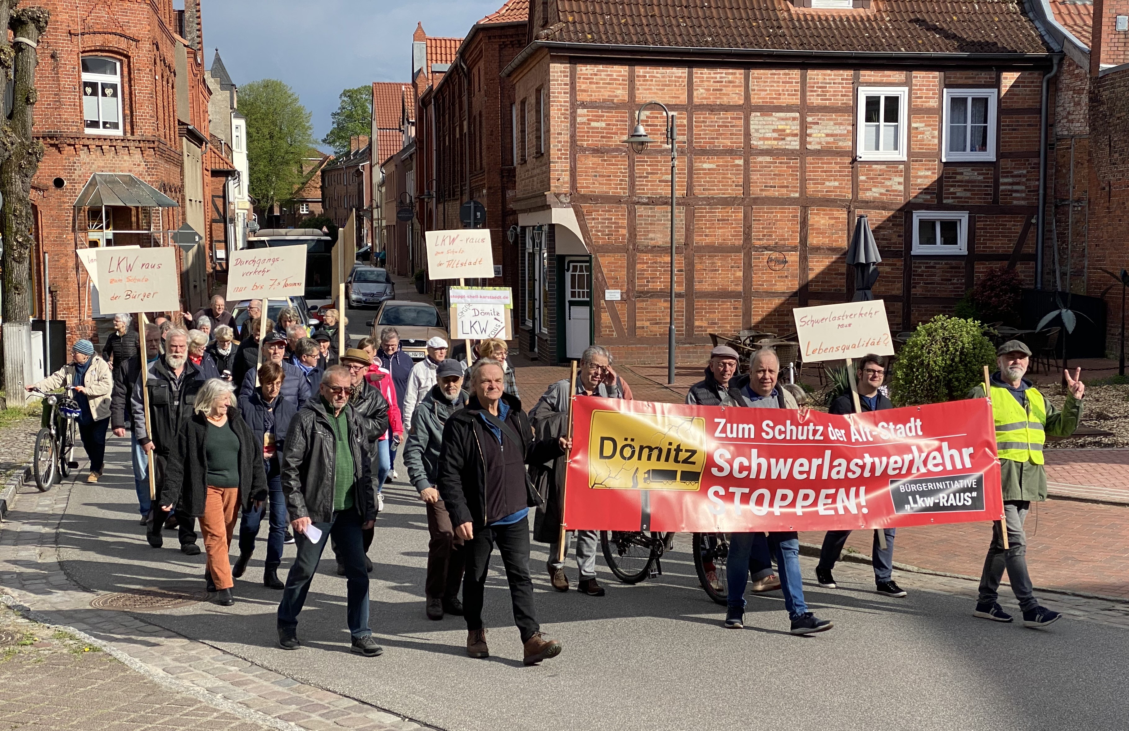 Die Bürgerinitiative führte eine Demonstration gegen die Belastung der Stadt Dömitz durch den Schwerlastverkehr durch. Der Demonstrationszug bewegte sich vom Parkplatz am Pflege- und Seniorenheim Roggenfelder Straße Richtung Altstadt, durch die Friedrich-Franz-Straße und Torstraße bis zum Rathausplatz. Die Polizei sicherte den Zug ab.
